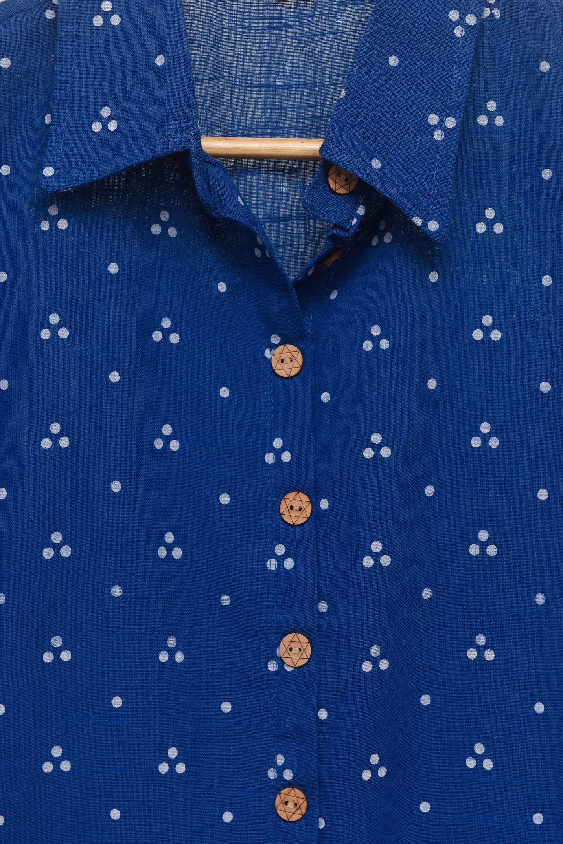 Rooted in comfort, elevated in style - Indigo Ruh is a soulful co-ord set that blends tradition with contemporary charm. The long shirt-style top, adorned with delicate white prints, features a unique side slit that adds definition and flair. Paired with relaxed indigo palazzo pants, this ensemble flows effortlessly with every step. Light, breathable, and beautifully detailed, it's an ideal pick for casual outings, creative workdays, or simply feeling at ease in your skin.